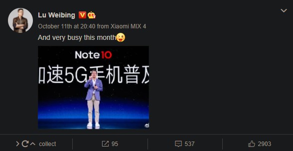 A postagem traz uma legenda instigante que afirma que o mês de outubro será 'agitado', seguido de uma foto do executivo tirada durante o lançamento da linha Redmi Note 10, sugerindo que a fabricante chinesa pode apresentar os novos dispositivos nas próximas semanas.