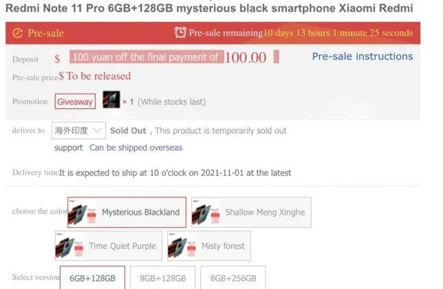 De acordo com a empresa, o Redmi Note 11 Pro será vendido em quatro cores: Mysterious Black, Misty Forest, Quite Purple e “Shallow Meng Xinghe”. Já o 11 Pro Plus também terá as mesmas três primeiras cores.